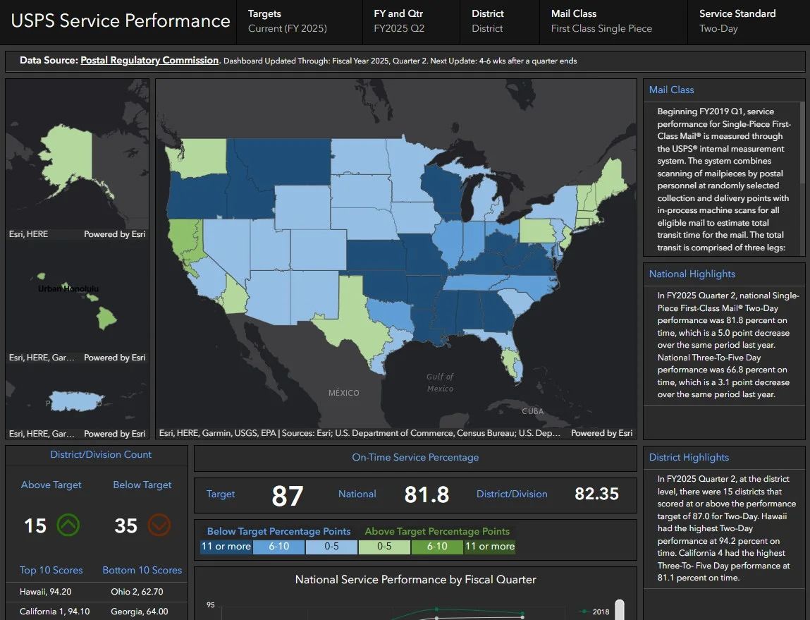 Our Semiannual Report also summarizes our oversight of the Postal Service’s 10-year Delivering for America (DFA) plan. Of note is the new regional processing and distribution center in Atlanta, GA, which faced serious problems during implementation leading to an immediate and significant decline in service performance in the region. A follow-up audit there found improved service performance since the launch; however, performance is still below nationwide averages and well below goals.