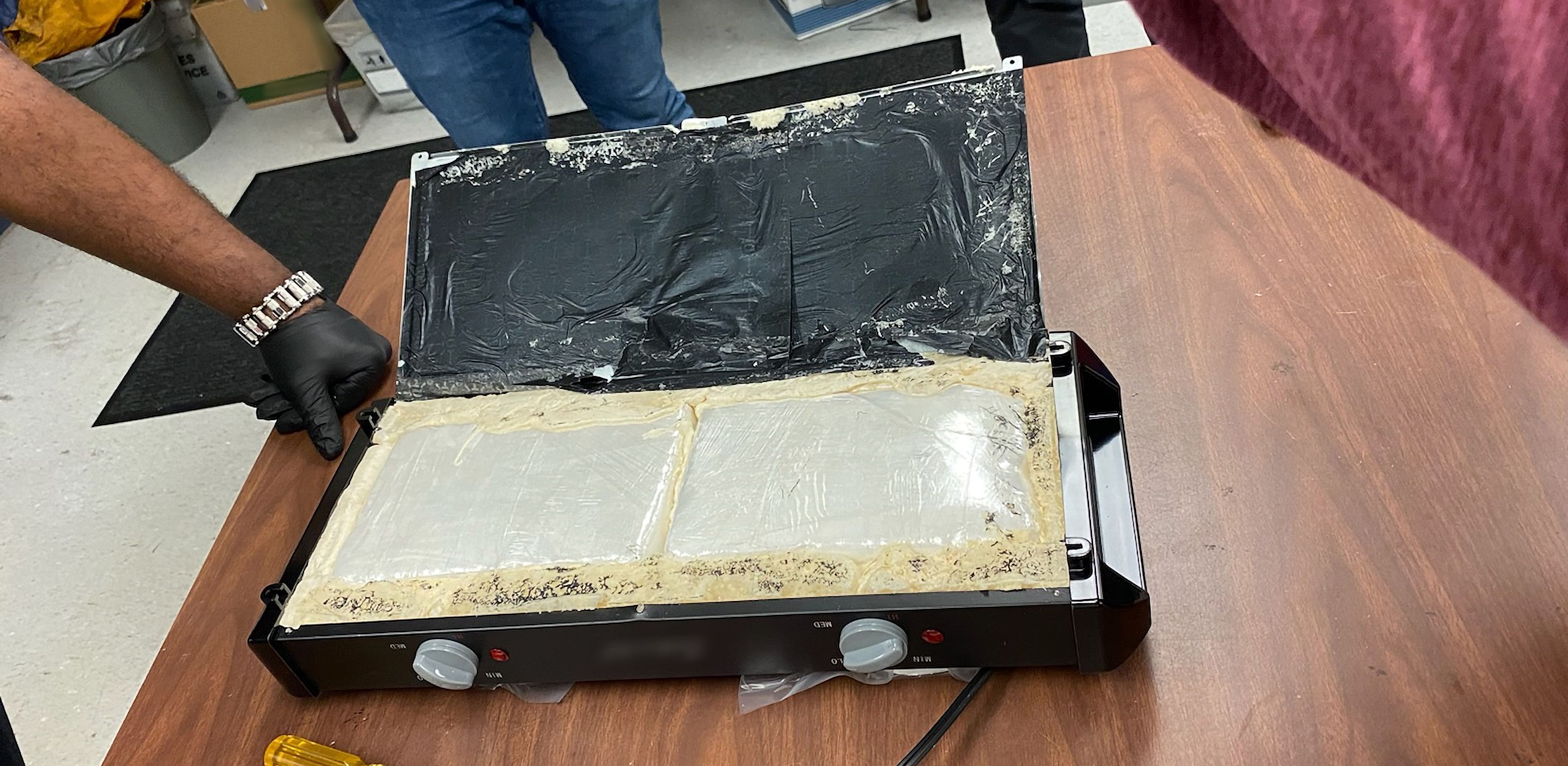 Investigators executed a search warrant on a parcel, which revealed narcotics concealed inside an electric grill. Source: DEA.