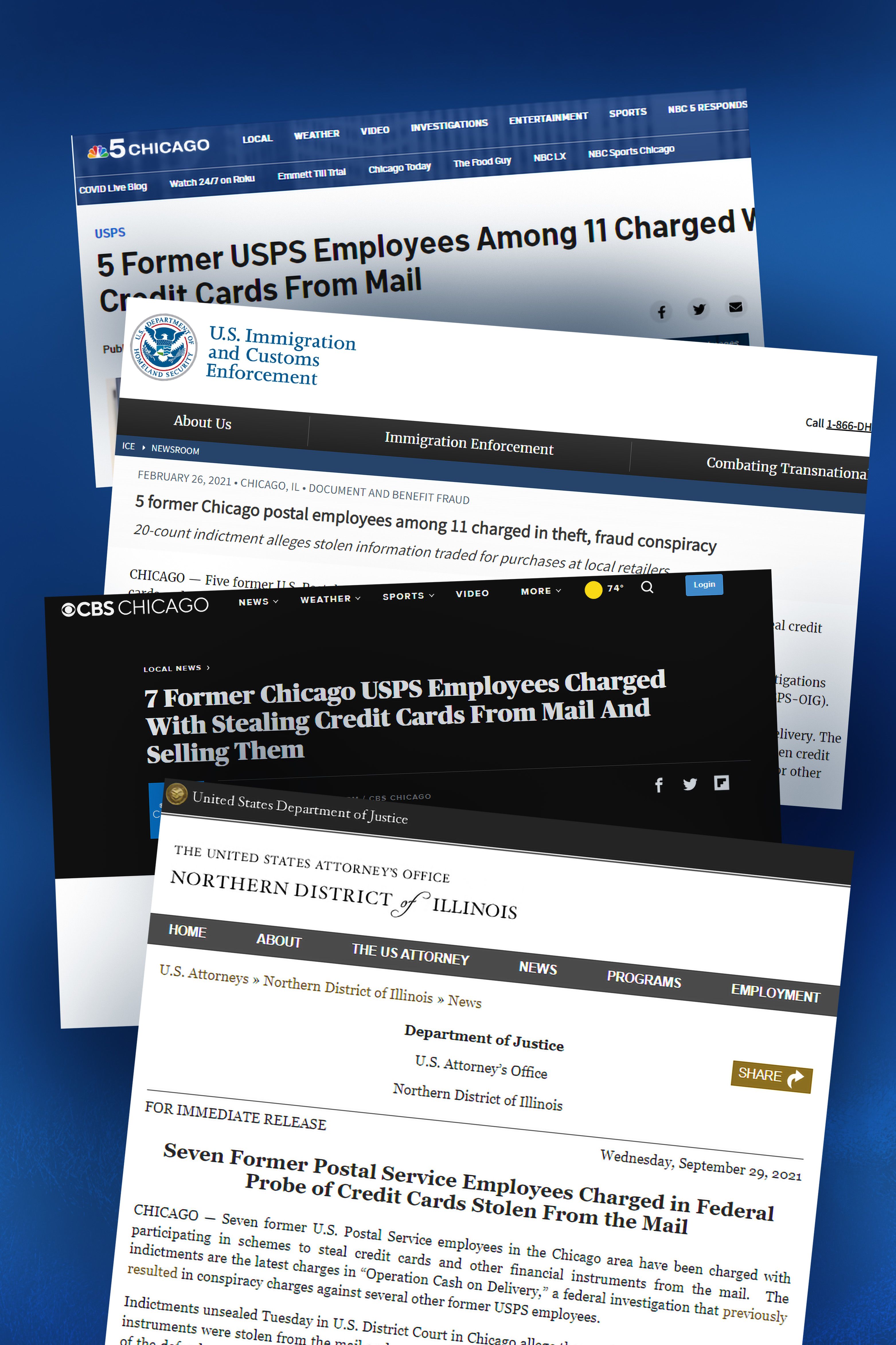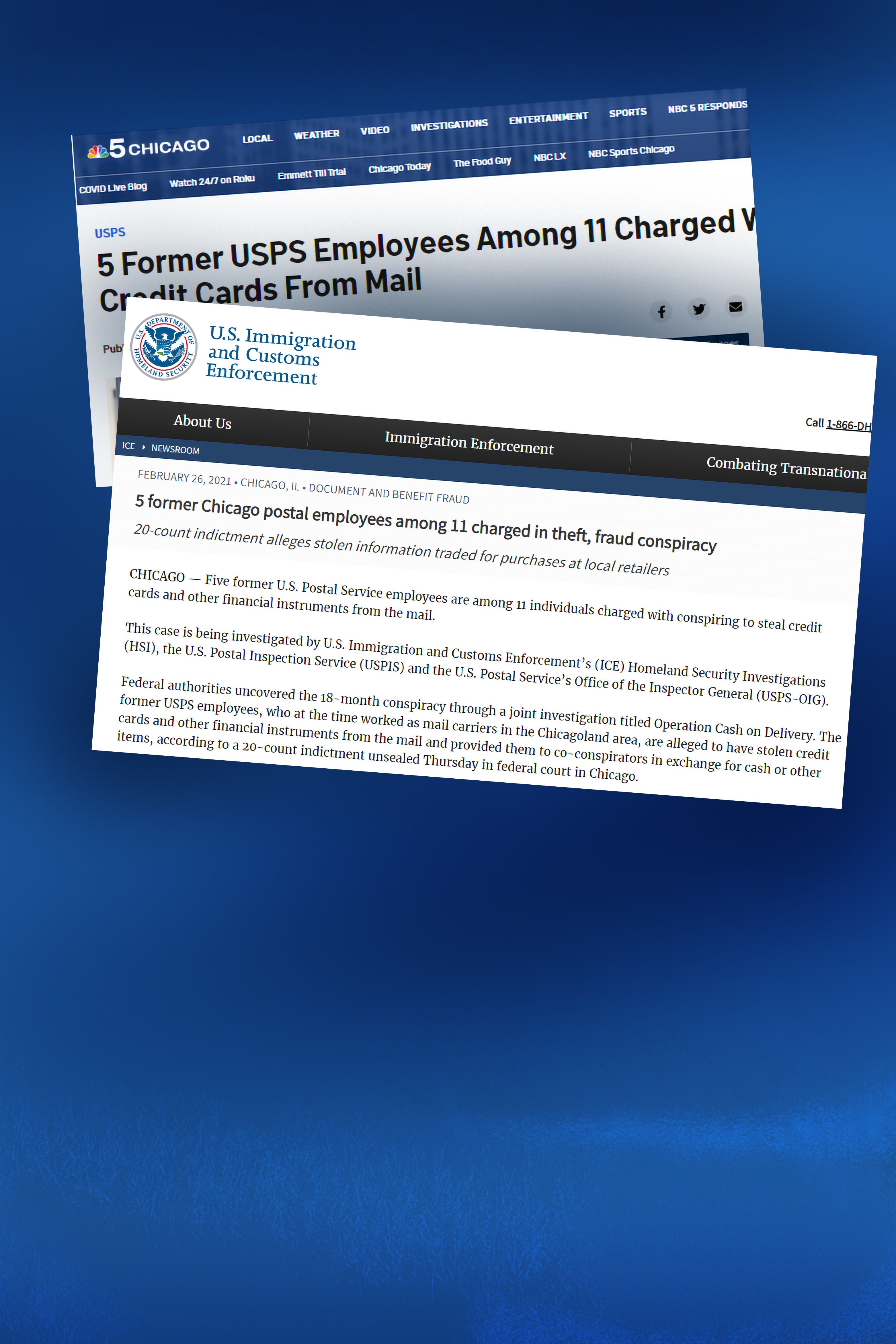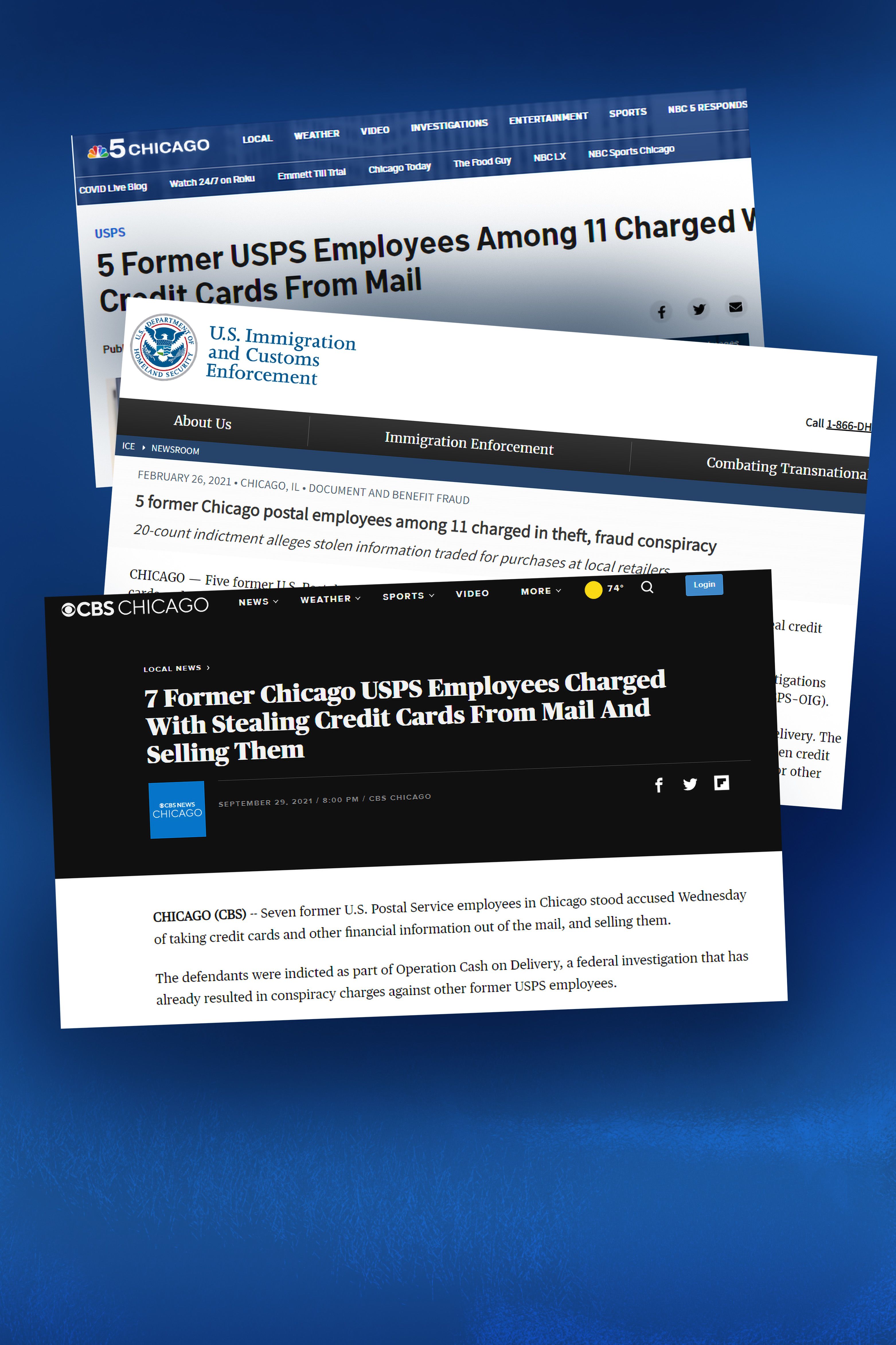 This was no ordinary mail theft investigation. Complaints were flooding the lines: Postal Service customers around Chicago were calling their banks and credit card issuers saying checks and cards were being stolen from the mail and fraudulently used. Those institutions and clients were reporting the thefts directly to our Hotline and the U.S. Postal Inspection Service, which investigates mail theft by non-postal employees. Some contacted other federal law enforcement and local police departments saying the thefts went wider: business and U.S. Treasury checks, military mail, debit cards, gift cards, cash, and personally identifiable information (PII) were being hijacked at a rampant pace.