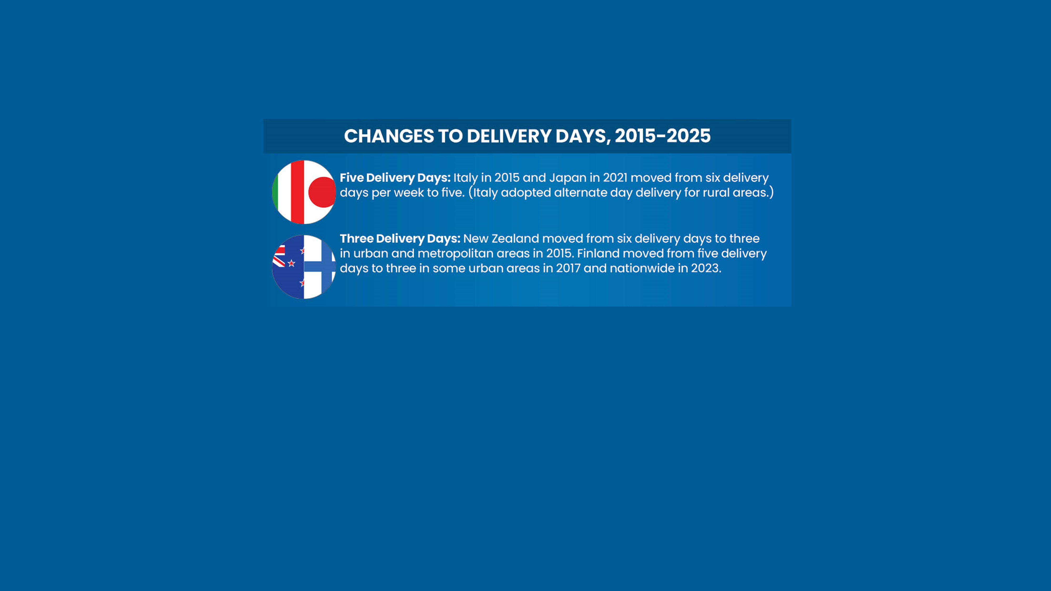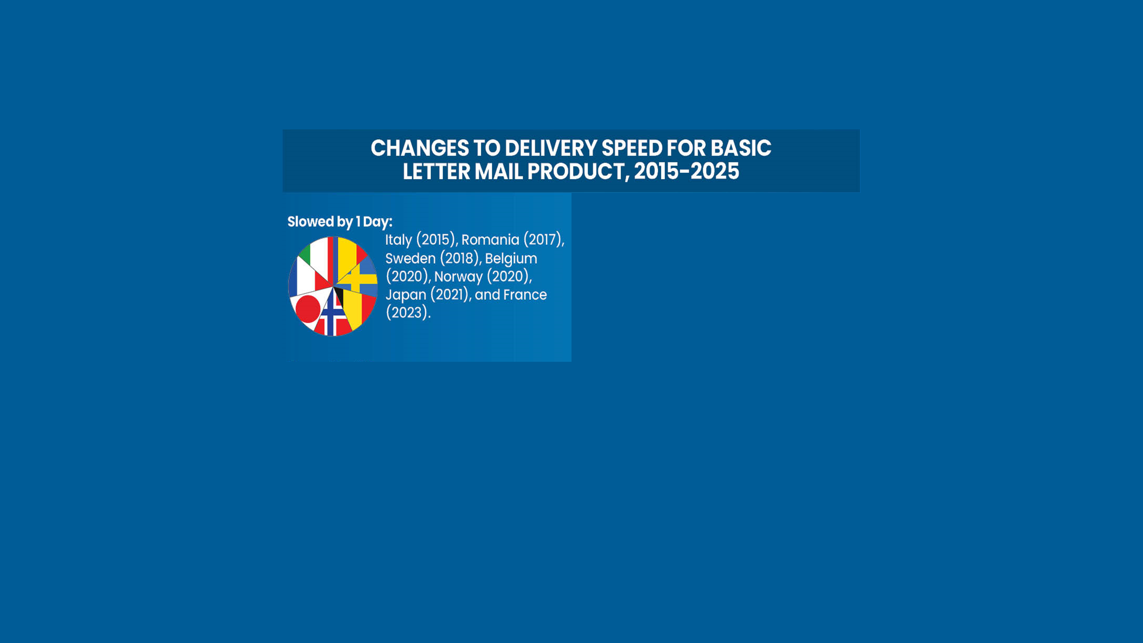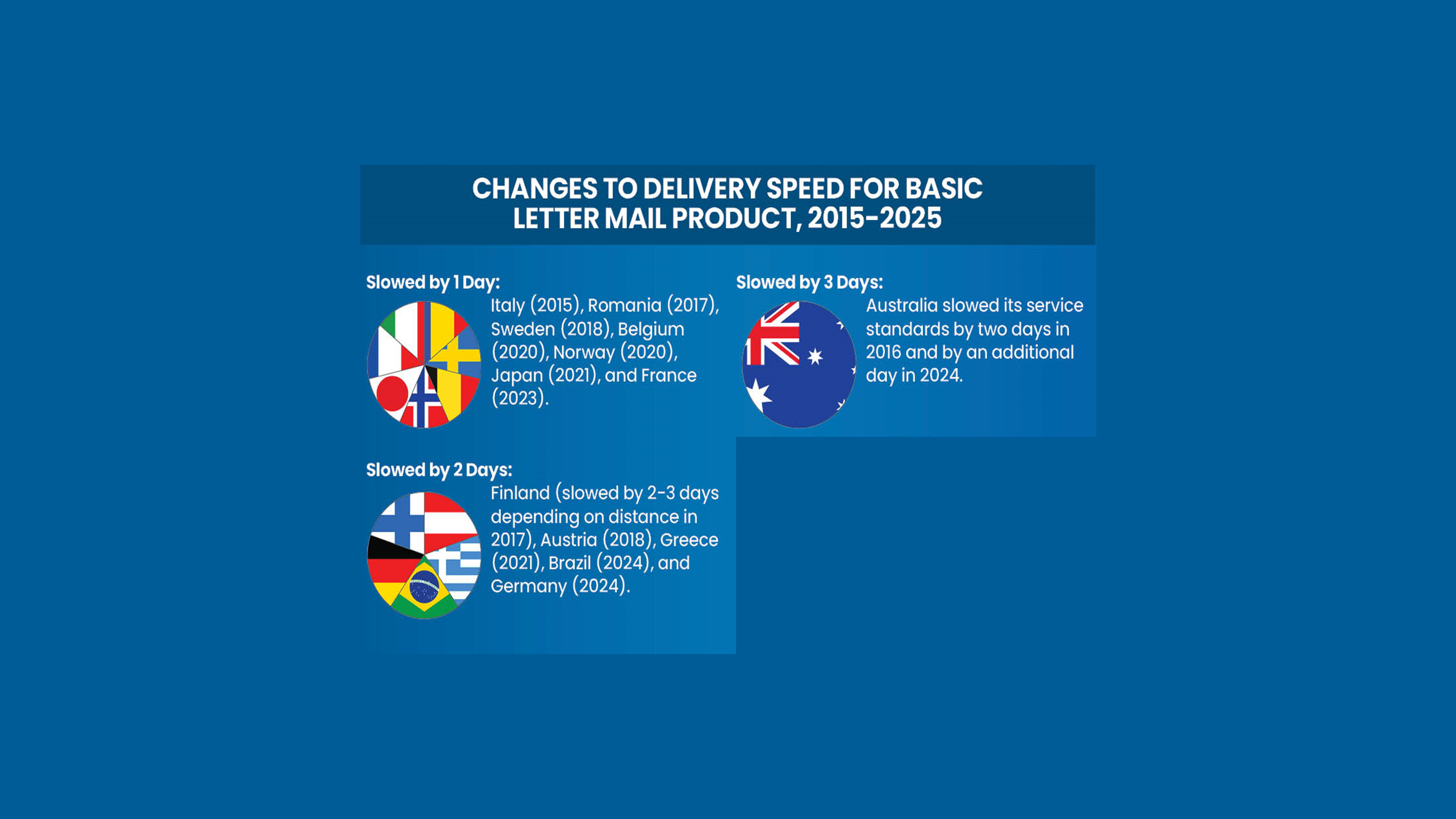 The changes fall into four categories: delivery days, delivery speed, postal retail networks, and scope of USO products.
