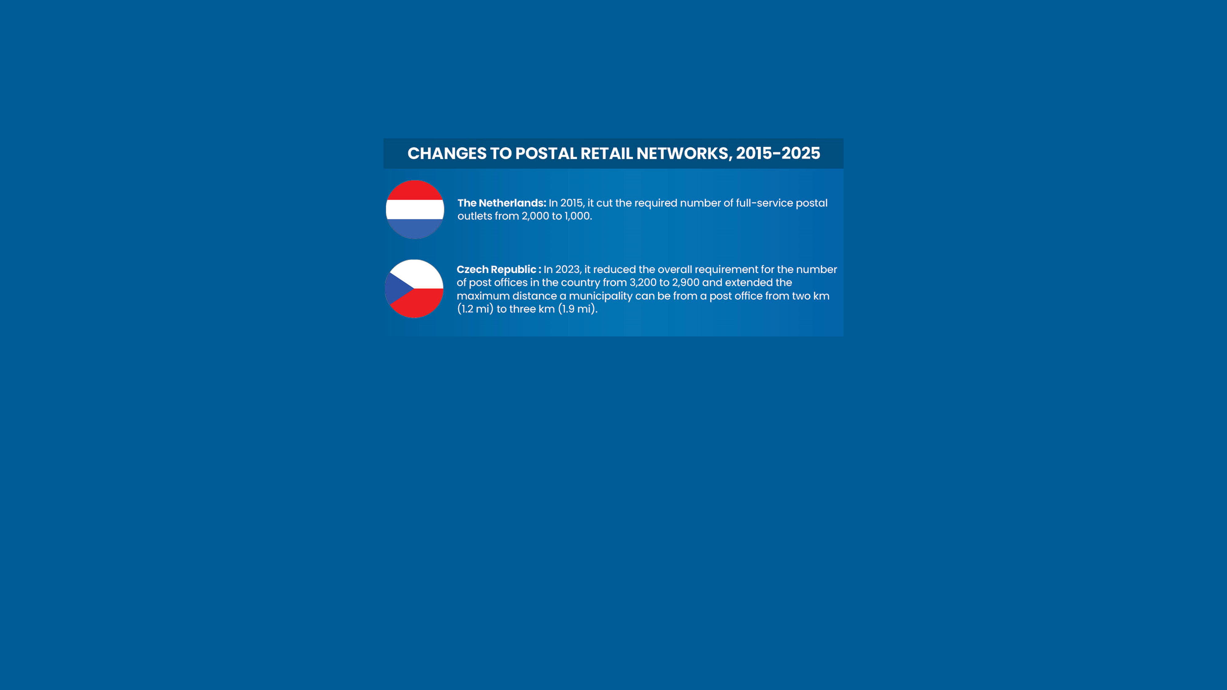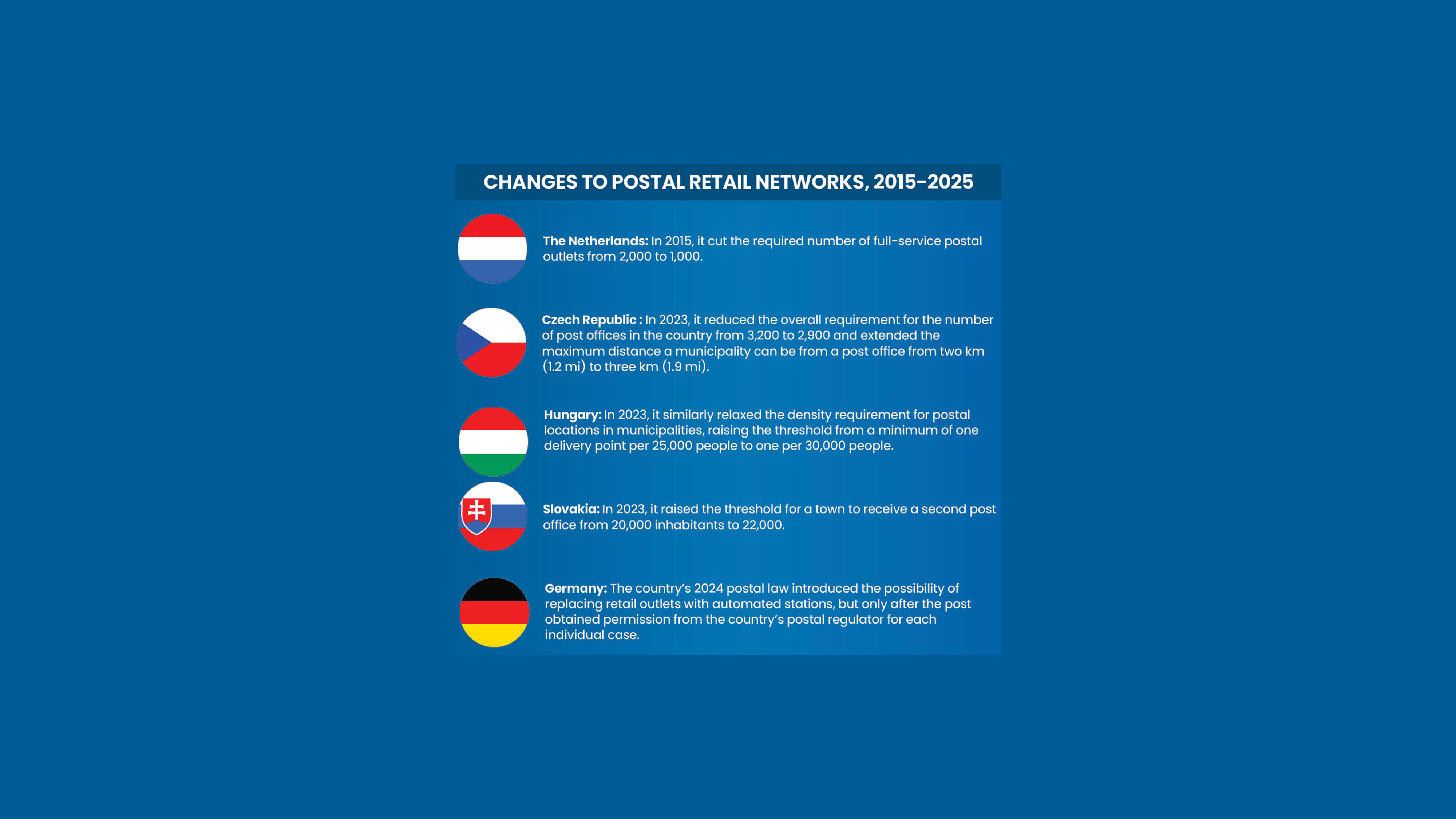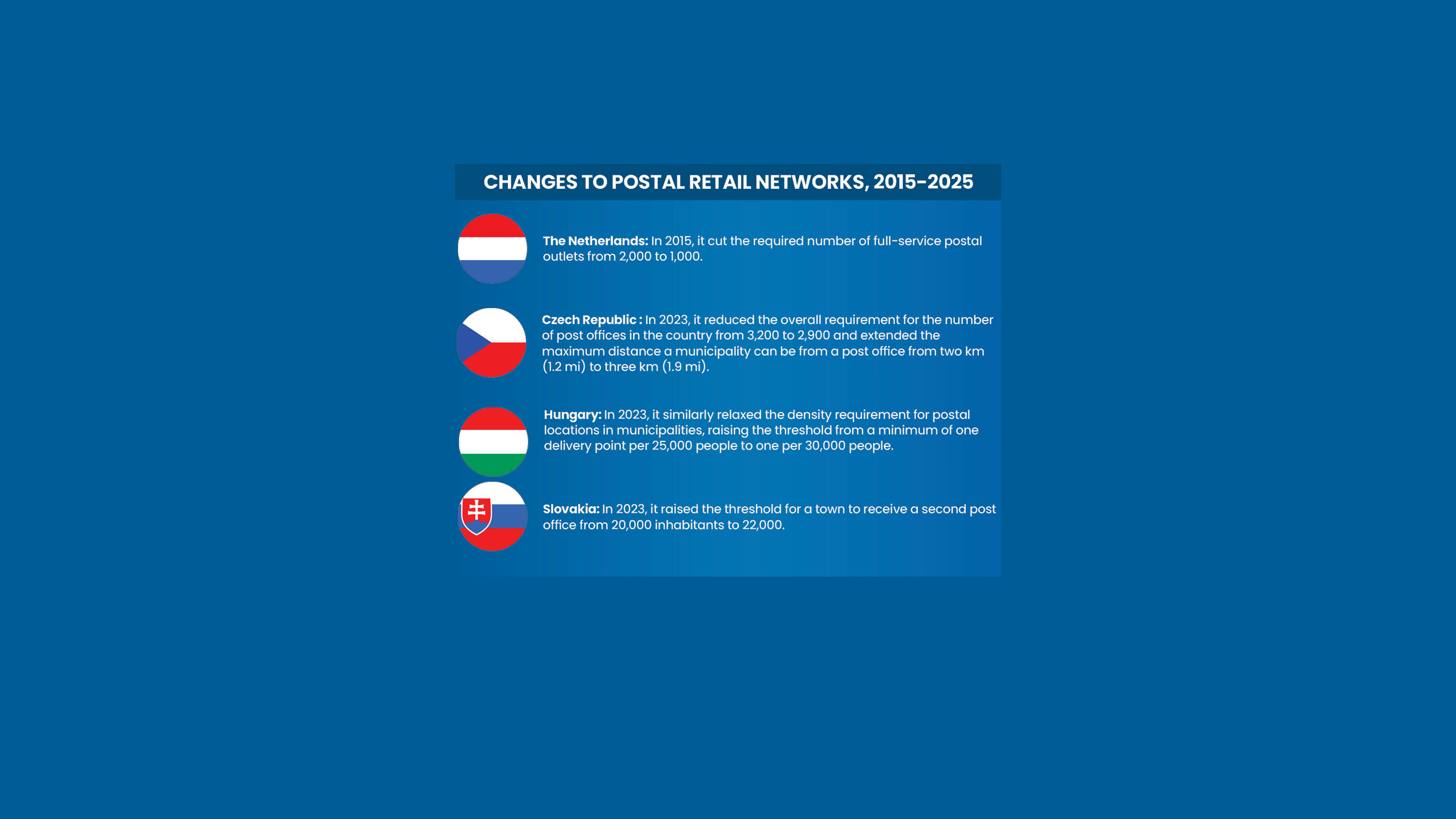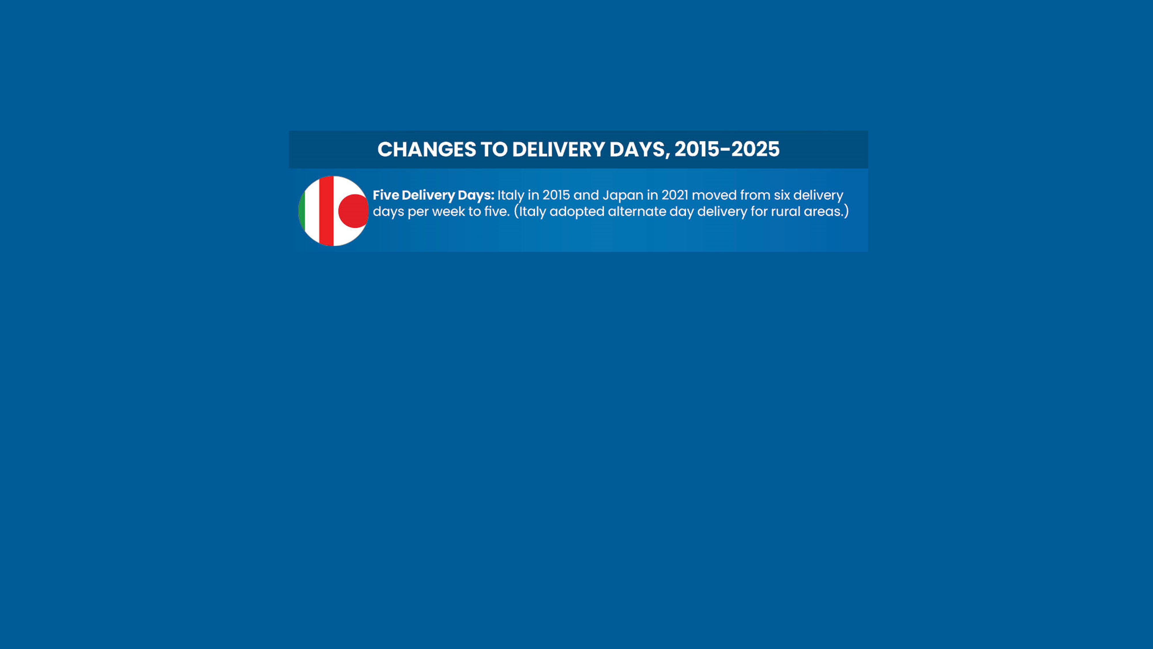 The changes fall into four categories: delivery days, delivery speed, postal retail networks, and scope of USO products.