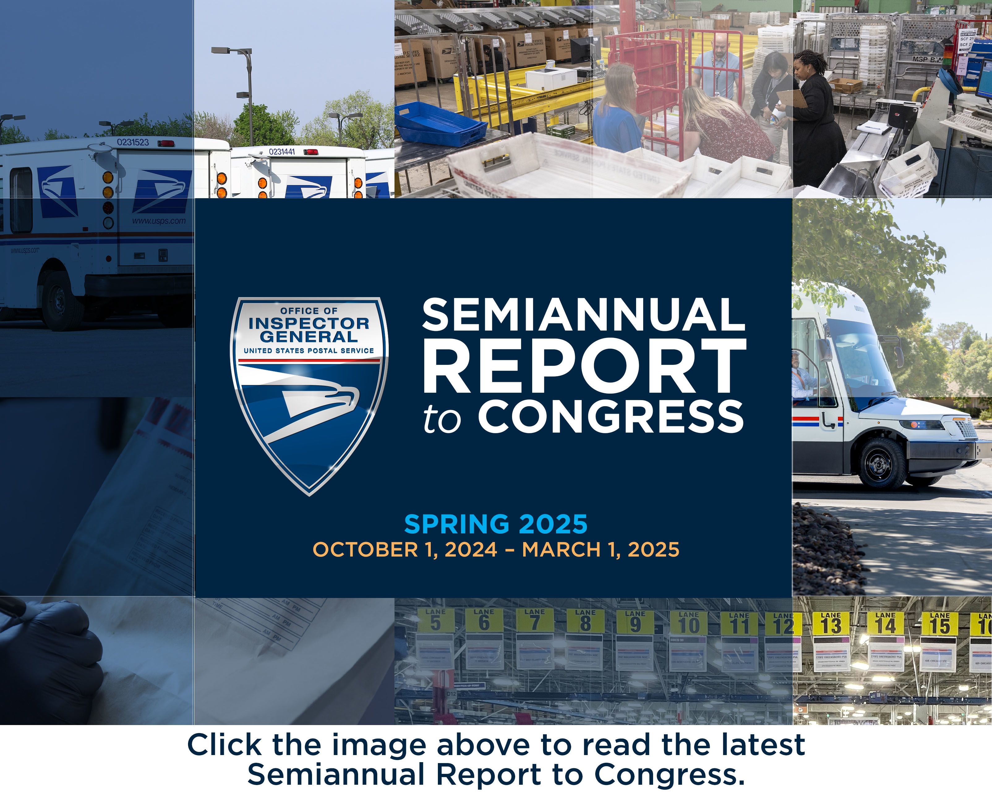 We invite you to read this latest Semiannual Report to Congress to learn more about the topics above, the challenges Postal Service management is facing, as well as our investigations into senior executives and whistleblowers who have alleged reprisals.