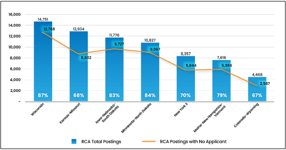 Additionally, between FY 2021 to FY 2023, USPS posted over 700,000 pre-career positions, but more than half did not receive any applications, as seen below.