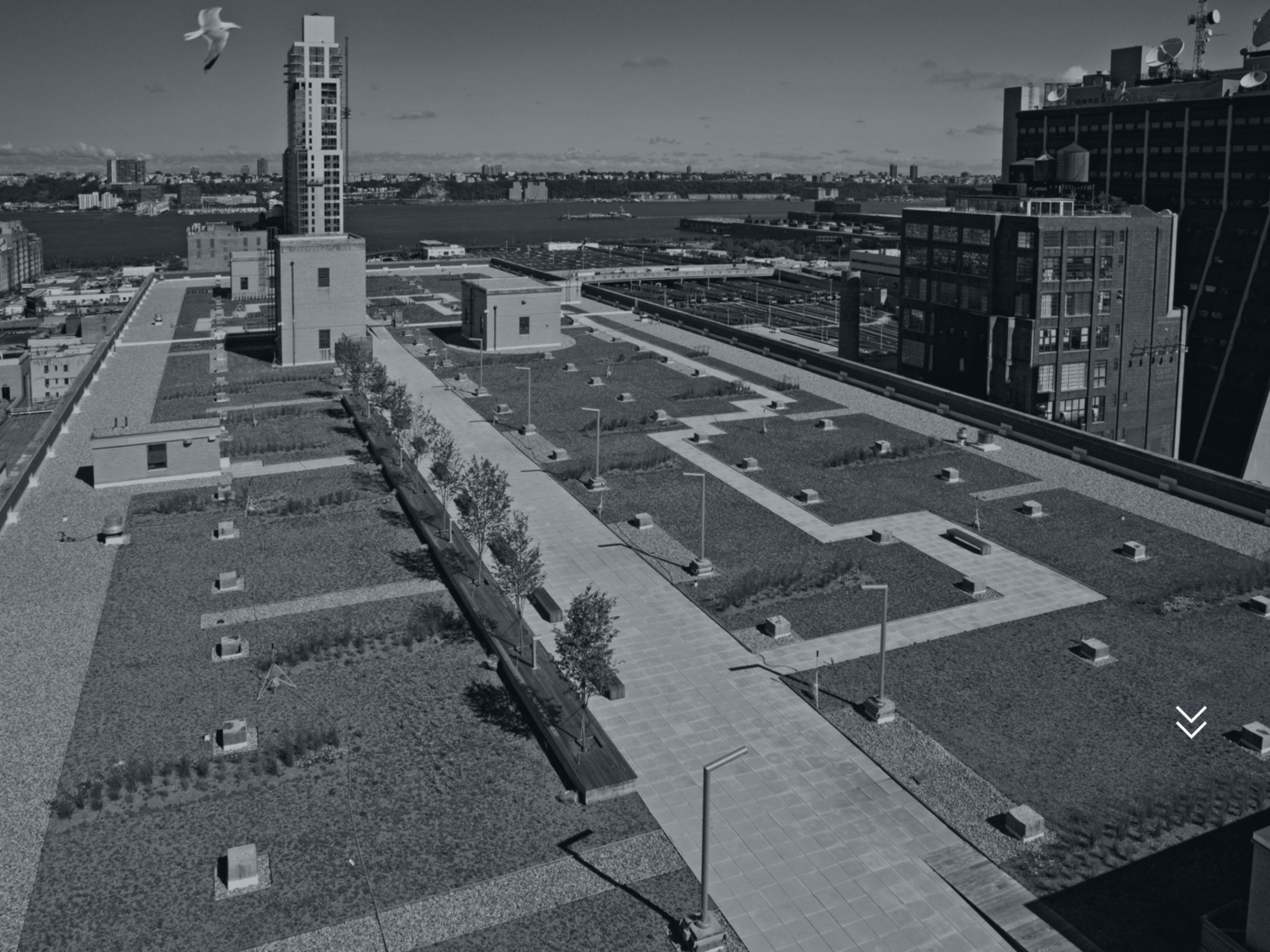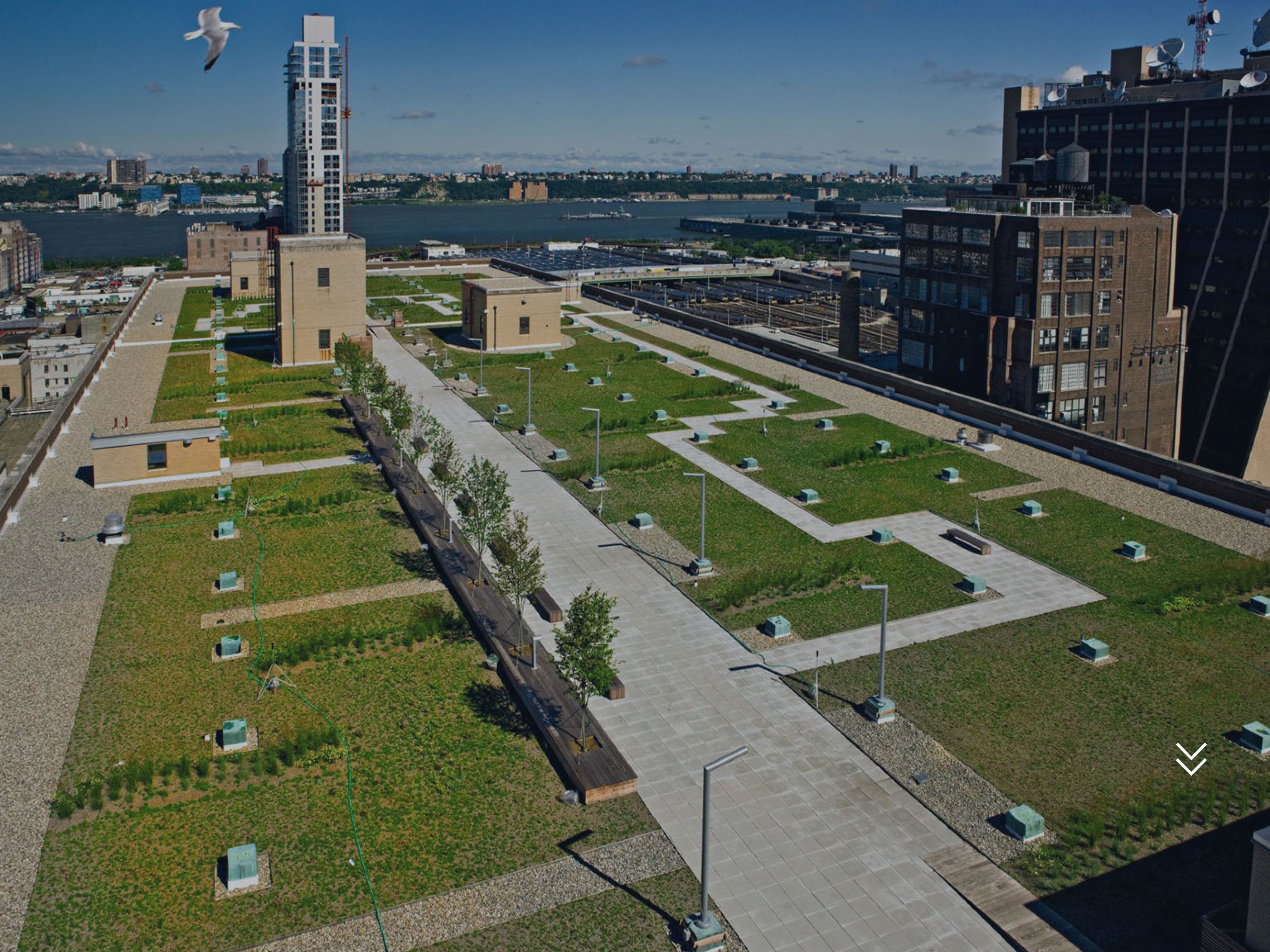 Below: A green roof on top of New York City's Morgan mail processing facility